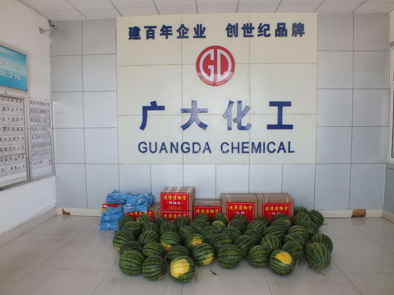 經(jīng)過一上午的準備,所有的西瓜在整齊擺放,讓員工們第一時間吃上清涼可口的西瓜,緩解炎熱高溫帶來的疲憊。