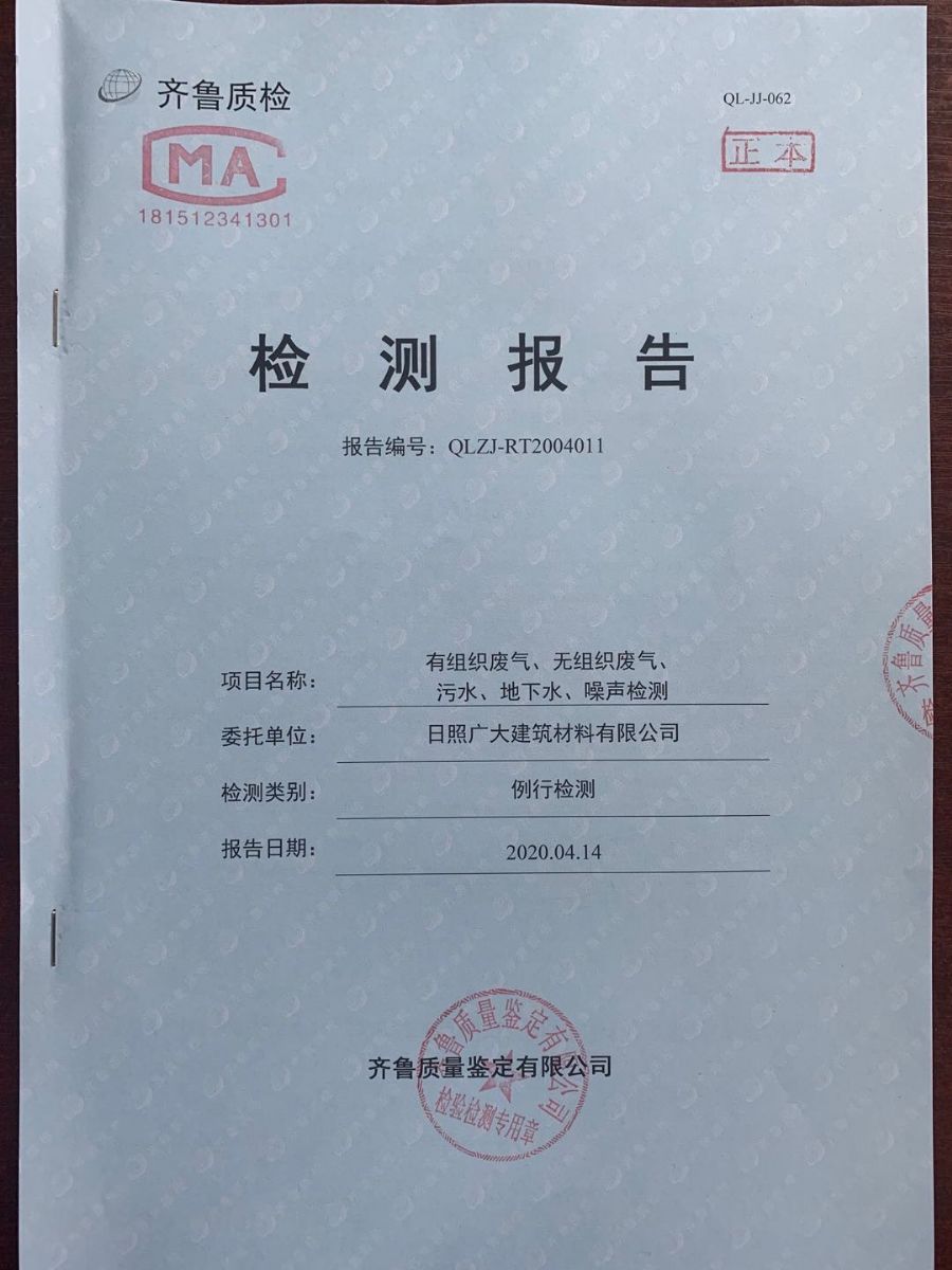 日照廣大建筑材料有限公司2020年第一季度環(huán)境信息公開